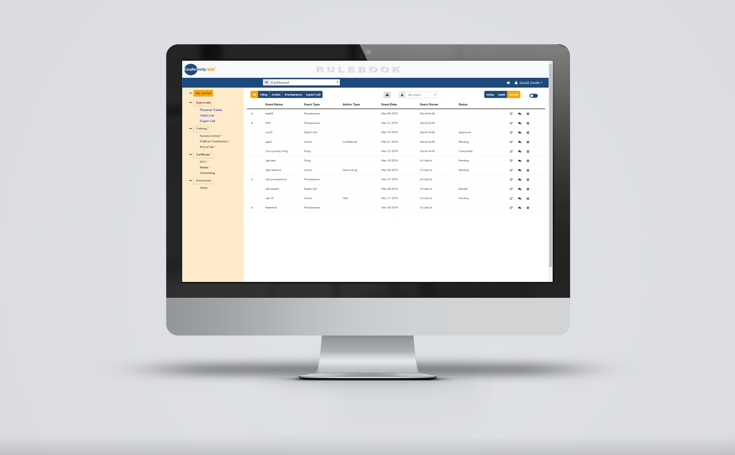 RuleBook is our web-based software that provides a risk-based approach to regulatory compliance by linking regulations to internal policies and risks and further maps them to business lines and products. It is a repository to organize regulations tasks and activities, personal trading statements, training, KYC/AML, books & records, mock-exams and a workflow for global regulatory change management. The system supports role-based security functions with centrally managed controls for access to regulatory content. RuleBook helps ensure that the regulatory affairs and compliance teams are always current on new regulations.